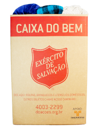 A Caixa do Bem é uma simpática caixa de papelão, que mede 55cm x 55cm x 80cm.
